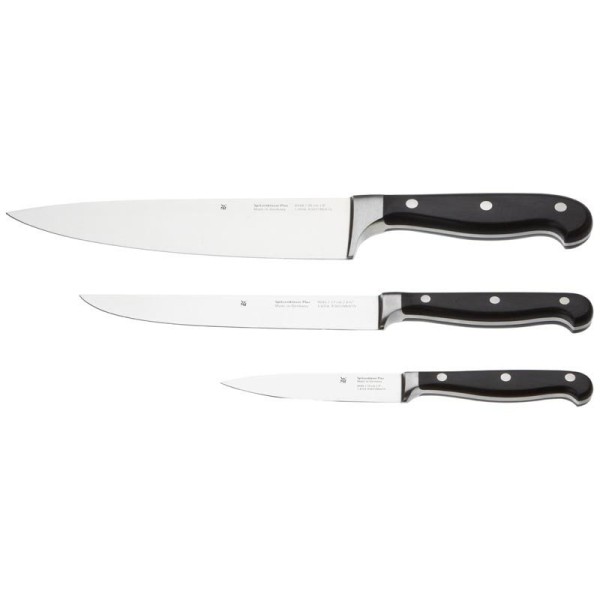 Набір ножів, WMF, Spitzenklasse Plus, 3 шт. — кухонний набір для нарізання та приготування представляє собою оптимальне рішення для щоденної роботи на кухні, поєднуючи високу якість металу, ергономіку та довговічність. Цей набір призначений для нарізання овочів, фруктів, м’яса та хліба, забезпечує точні зрізи та комфорт під час використання, що робить приготування швидким і приємним.