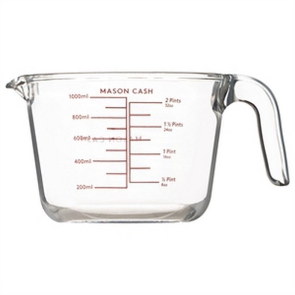 Dzbanek z miarką Mason Cash MC-Miarka (1 l) to praktyczny szklany pomocnik kuchenny przeznaczony do precyzyjnego odmierzania płynów i składników podczas gotowania i pieczenia, zapewniający wygodę odmierzeń i łatwiejszą kontrolę receptur.
