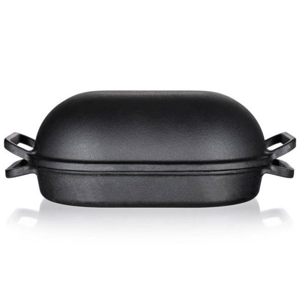 Господарська жаровня Banquet BRYTFANNA 39 cm вирізняється масивною чавунною конструкцією, яка забезпечує стабільну температуру під час тривалого готування. Натуральна приправлена поверхня створює антипригарний ефект без застосування синтетичних емалей, що робить жаровню безпечною для здоров'я і стійкою до інтенсивного використання. Конструкція з литих ручок гарантує надійне керування навіть при повному завантаженні, а товсті стінки забезпечують акумуляцію тепла, що оптимізує витрати енергії. Кришка-пательня додає функціональності, дозволяючи використовувати її як додаткову ємність для подачі або приготування. Завдяки сумісності з усіма типами плит та можливості застосування у духовці жаровня підходить для різних кулінарних технік: запікання, томління, смаження, карамелізації та т.д. Простота догляду та можливість відновлення приправленої поверхні роблять цей посуд інвестицією на багато років.Додаткова інформація