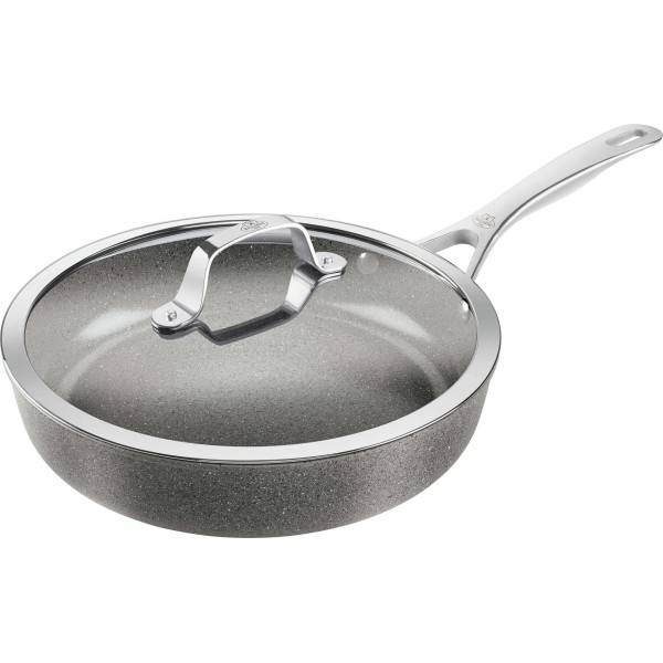 Пательня sauté Ballarini Salina Ceramic 28 см з кришкою для смаження та тушкування — універсальна посудина для щоденного приготування страв: смаження, тушкування, підсмажування овочів і м’яса, приготування соусів та запікань. Вона поєднує легкий алюмінієвий корпус із керамічним антипригарним покриттям, зручну сталеву ручку та комплектну кришку, що забезпечує рівномірний розподіл тепла і зручність у використанні як на плиті, так і в духовці.