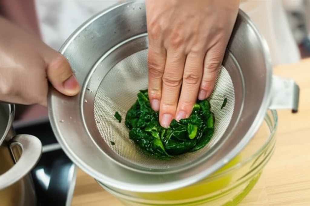 Zamrożony szpinak odmroź i wyciśnij starannie wodę. Świeży opłucz i wysusz.