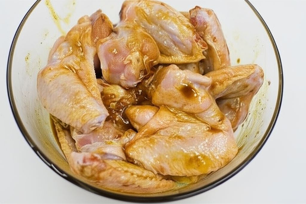 Natrzyj skrzydełka marynatą i odłóż na 2 godziny do chłodnego miejsca.