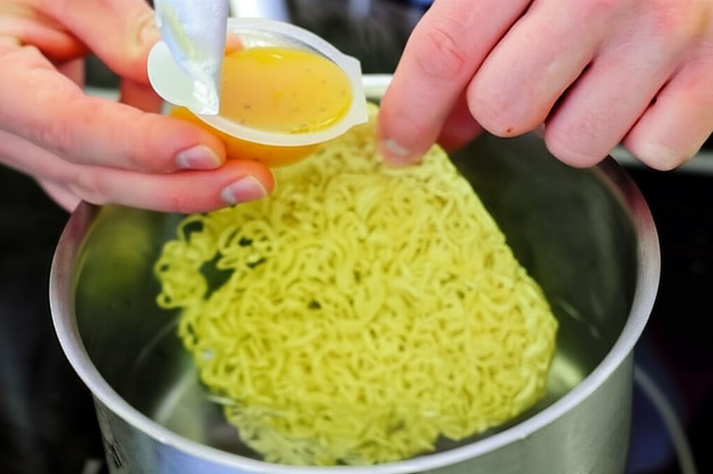 W garnku ugotuj makaron w litrze wody z dodatkiem bulionetki Knorr. Potem odcedź go, zostawiając około 2 łyżki bulionu.