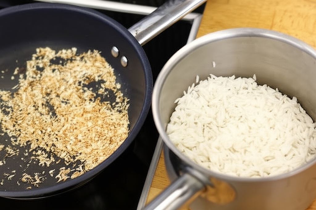 Na suchej patelni podpraż wiórki kokosowe. Ryż ugotuj zgodnie z instrukcją producenta.