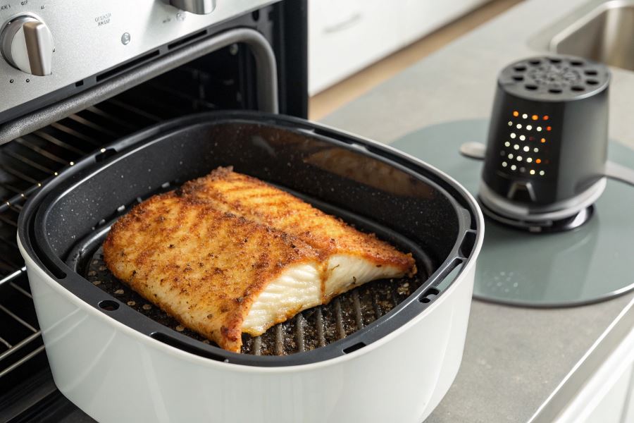 - Brak nieprzyjemnych zapachów – w przeciwieństwie do tradycyjnego smażenia, airfryer nie generuje intensywnego zapachu ryby w całym mieszkaniu