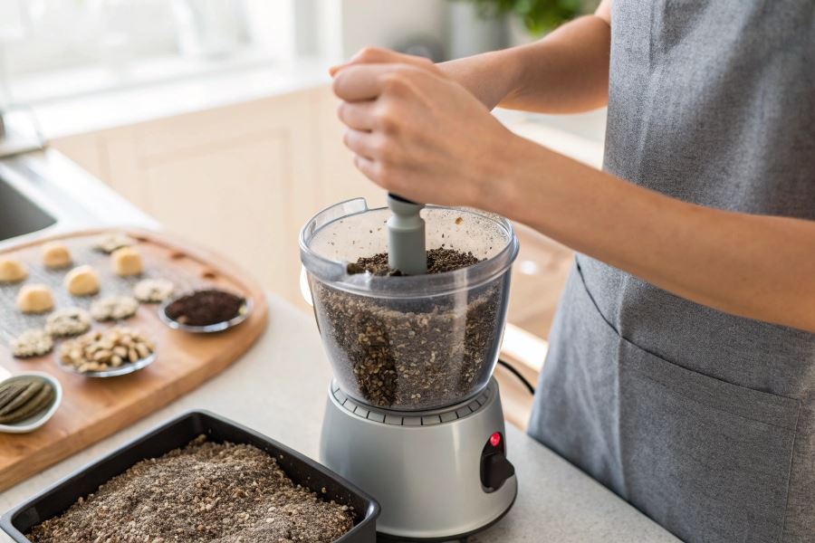 Wskazówka eksperta: Dodanie 1 łyżeczki cukru pudru na 100g maku przed mieleniem zapobiega przywieraniu ziaren do ścianek blendera i poprawia efektywność procesu.
