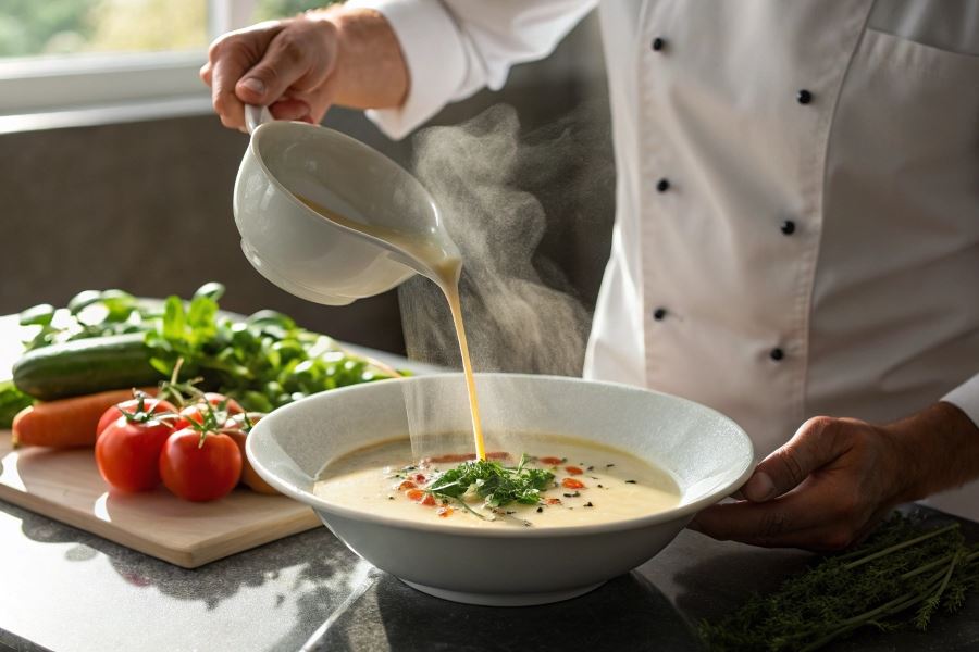 Profesjonalnym trikiem jest dodanie szczypty sody oczyszczonej do zup z pomidorów lub innych kwaśnych warzyw – neutralizuje ona kwasowość i pozwala wydobyć naturalną słodycz składników.