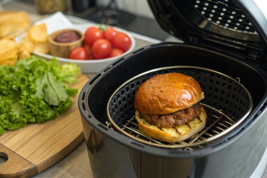 Zasada działania airfryera przy smażeniu burgerów