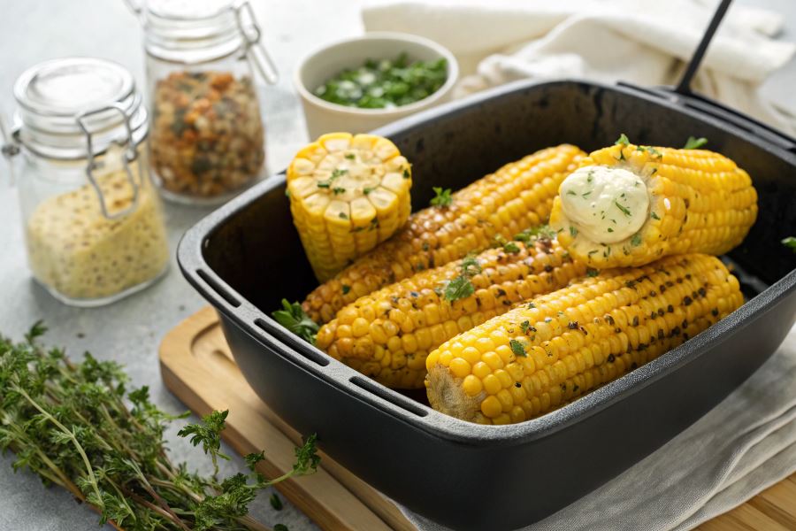 Ziarna kukurydzy – świeże lub mrożone ziarna można przygotować w zaledwie 8 minut, uzyskując chrupiącą przekąskę bez dodatku masła.