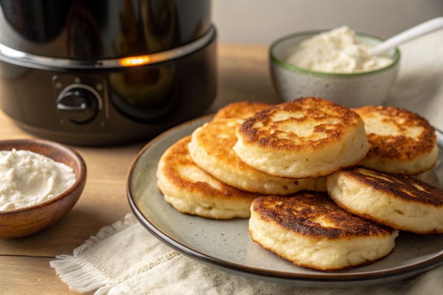 Syrniki najlepiej podawać bezpośrednio po przygotowaniu, gdy są jeszcze ciepłe, aby w pełni docenić kontrast między chrupiącą skórką a miękkim wnętrzem.