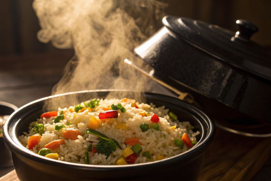 Meksykańska wersja ryżu z warzywami to eksplozja kolorów i smaków. Wymieszaj 2 szklanki ugotowanego ryżu długoziarnistego z puszką odsączonej czarnej fasoli, kukurydzą, posiekaną czerwoną papryką i cebulą. Dodaj łyżeczkę kuminu, pół łyżeczki chili w proszku i szczyptę kolendry.