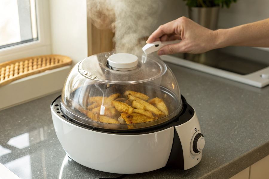 Zastosowanie dedykowanej pokrywy w airfryerze znacząco zmienia dynamikę procesu gotowania: