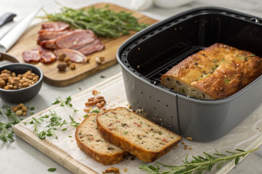 Pasztet drobiowy w airfryerze zyskuje wyjątkową konsystencję – jest wilgotny wewnątrz i przyjemnie zarumieniony na powierzchni.