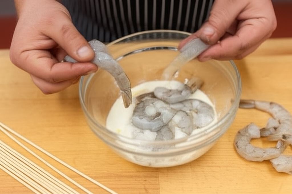 Możesz eksperymentować z dodatkami do szaszłyków – spróbuj podać je z grillowaną kukurydzą, pieczonymi ziemniakami lub świeżą sałatką z rukoli. Dla bardziej wyrazistego smaku dodaj do marynaty odrobinę chili lub świeżego imbiru. Możesz również zastąpić krewetki przegrzebkami lub kawałkami łososia.
