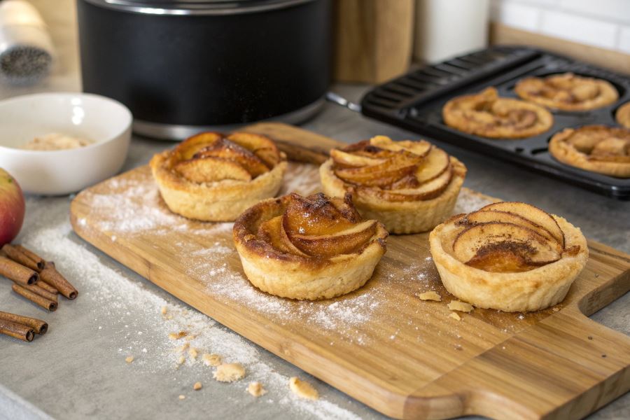 Ciastka z airfryer najlepiej smakują podane na ciepło, gdy jabłkowe nadzienie jest jeszcze lekko gorące, a ciasto zachowuje swoją chrupkość.
