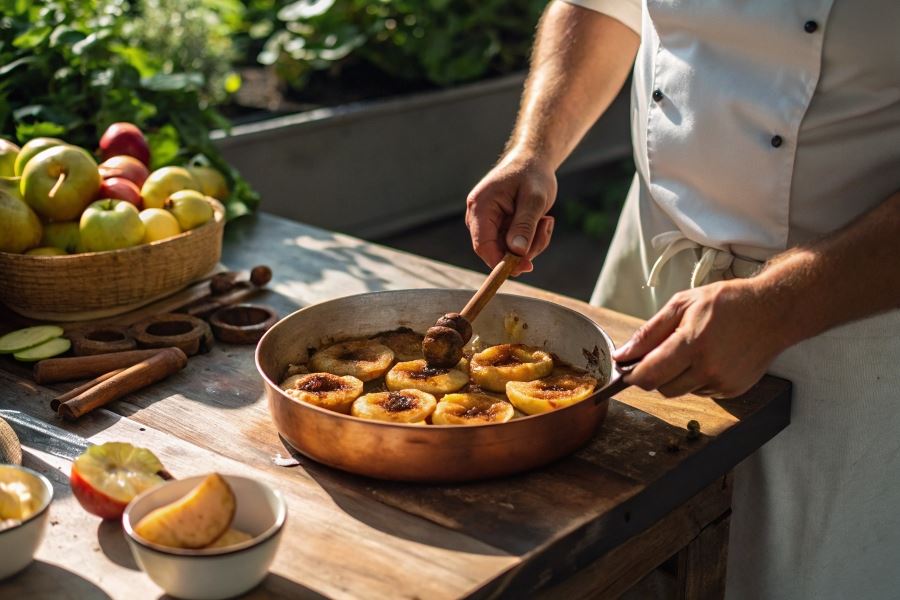 Prawdziwe nadzienie jabłkowe wymaga precyzyjnej karmelizacji – jabłka powinny zachować lekką strukturę, nie zamieniając się w mus. Sekret tkwi w średnim ogniu i krótkim czasie duszenia.