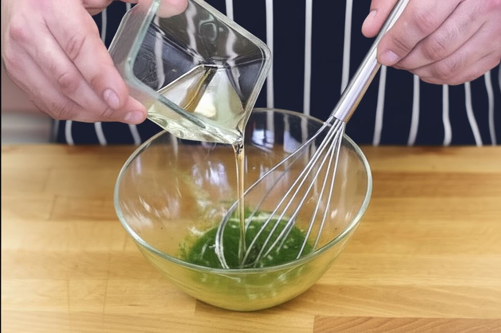 Zawartość saszetki Knorr wymieszaj w miseczce z trzema łyżkami wody i olejem. Wszystko starannie połącz.