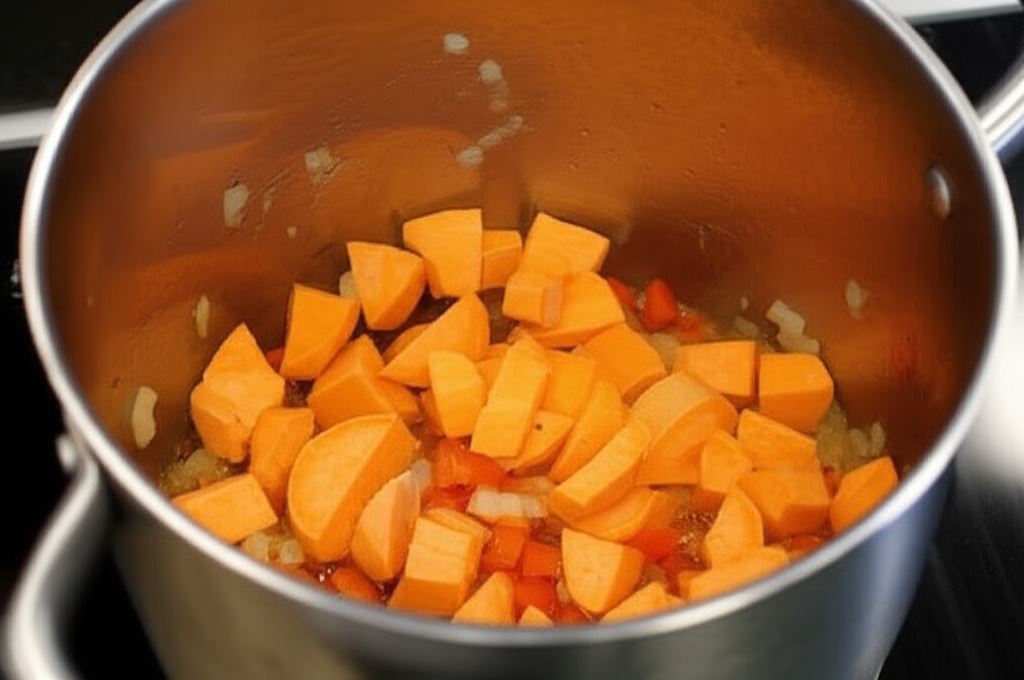 Sekret wyjątkowego smaku tej zupy tkwi w odpowiednim przygotowaniu warzyw. Przesmażenie batatów, cebuli, papryki i czosnku z pastą curry uwalnia intensywny aromat i pogłębia smak całego dania. Doprawienie zupy pieprzem cayenne dodaje jej charakteru i pikantnej nuty, która doskonale komponuje się ze słodyczą batatów.