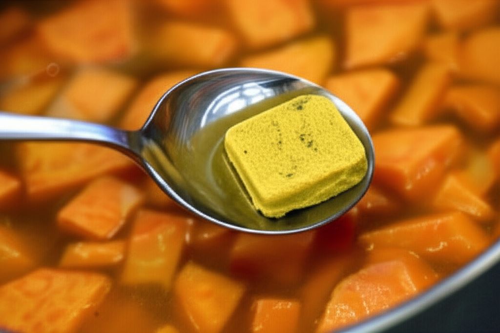 Wlej do garnka 1 litr wody, wsyp kostkę Knorr i doprowadź do wrzenia. Gotuj zupę aż bataty staną się miękkie.