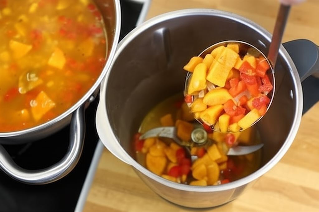 Potem wlej zawartość garnka do pojemnika blendera i zblenduj na aksamitny krem. Otrzymaną zupę przypraw do smaku pieprzem Cayenne.