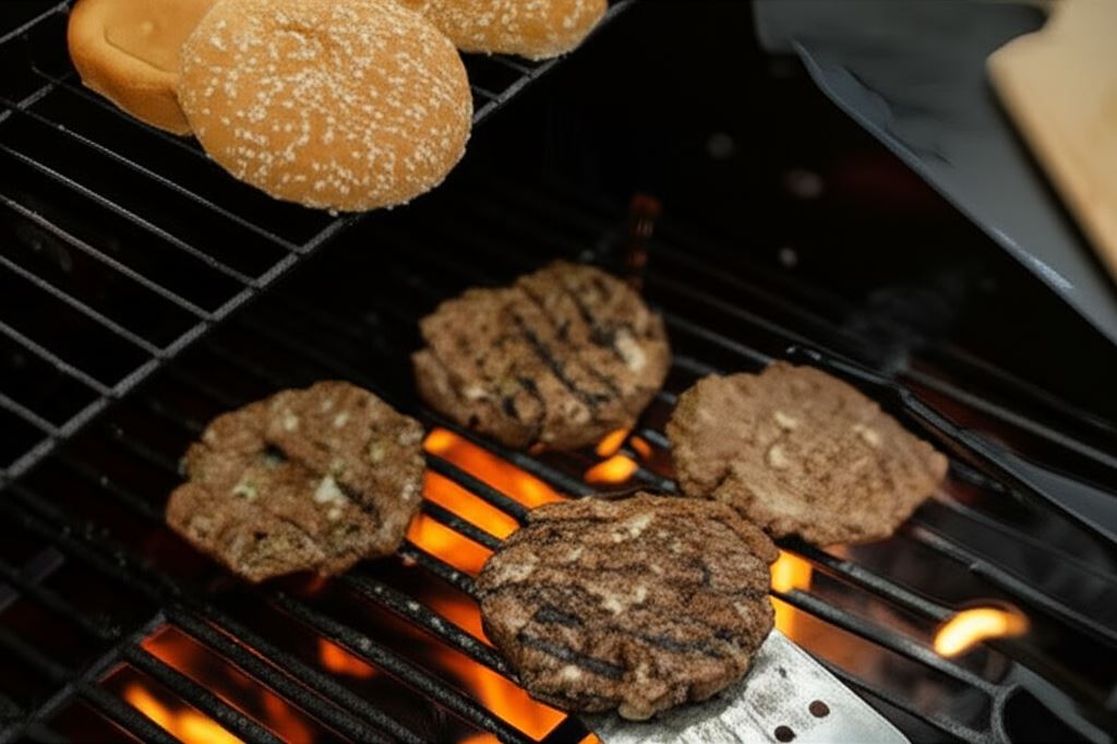 Uformowane kotlety smaż na nagrzanym grillu po 5 minut z każdej strony. Zielony pieprz z grubsza posiekaj nożem, połącz go z majonezem. Na grillu podpiecz bułki a potem posmaruj je przygotowanym sosem.