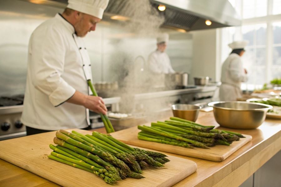 Prawidłowe przygotowanie szparagów zaczyna się od ich odpowiedniego oczyszczenia. Zielone szparagi wymagają jedynie odłamania zdrewniałych końcówek – wystarczy delikatnie zgiąć każdy szparag, a naturalnie złamie się w miejscu, gdzie kończy się twarda część. Białe szparagi natomiast wymagają dokładnego obrania ze skórki, zaczynając od około 2 cm poniżej główki i kierując się w dół. Do obierania najlepiej użyć specjalnej obieraczki do szparagów lub zwykłej obieraczki do warzyw, prowadząc ją delikatnym ruchem od główki ku końcowi.