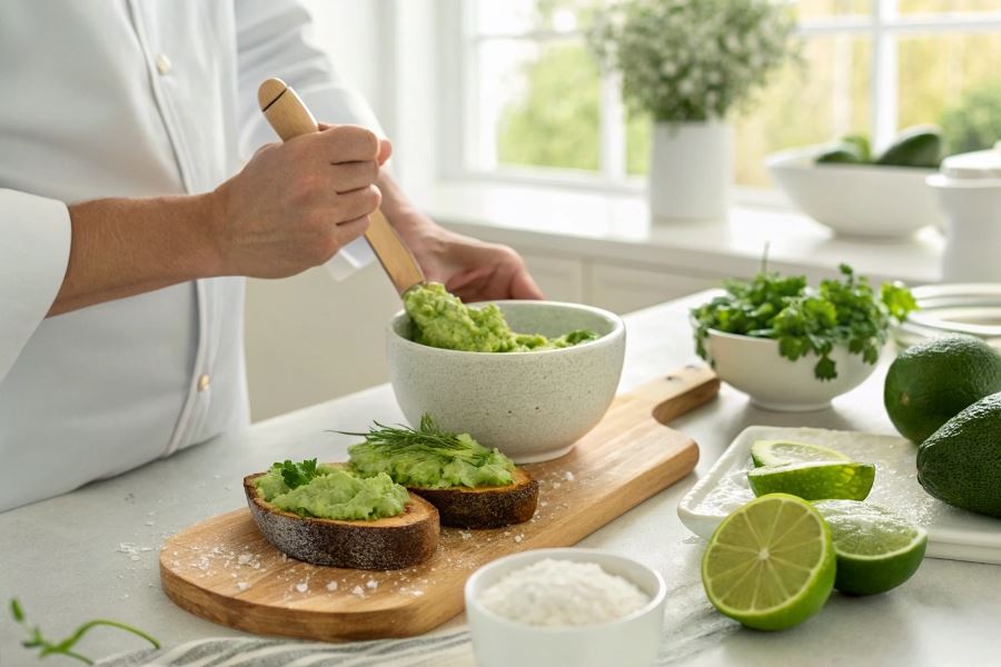 Przygotowanie doskonałej pasty z awokado zaczyna się od właściwej techniki obróbki owocu. Dojrzałe awokado powinno lekko uginać się pod naciskiem palca. Przekrój owoc wzdłuż, obracając nóż dookoła pestki. Następnie przekręć połówki w przeciwnych kierunkach, aby je rozdzielić. Pestka może być usunięta na dwa sposoby: delikatnie wbijając w nią ostrze noża i przekręcając lub używając łyżki do podważenia.
