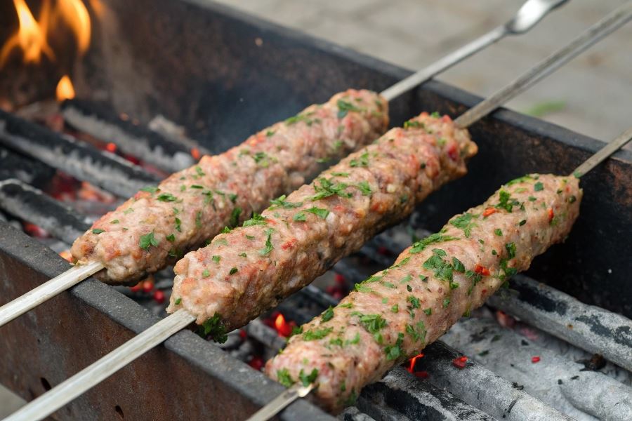 Tradycyjnie lula kebab grilluje się na mangale (azerskim grillu węglowym), utrzymując średnią temperaturę żaru. Kluczowe jest obracanie szpikulców co 2-3 minuty, aby mięso równomiernie się zarumieniło, zachowując soczystość wewnątrz. Całkowity czas grillowania wynosi około 8-10 minut.
