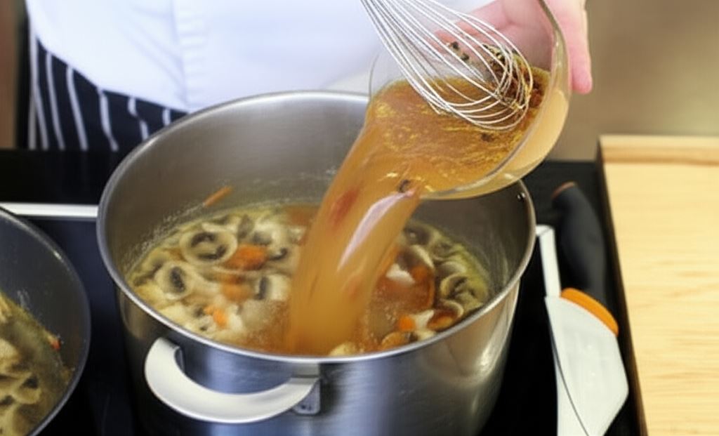 Wymieszaj Fix Knorr z 300 ml wody i wlej do wywaru zawierającego mięso i warzywa. Gotuj przez 5 minut.