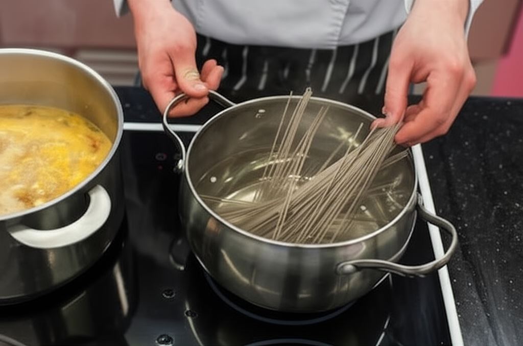 Przystąp do gotowania makaronu chińskiego w osobnym garnku. Zastosuj się do wskazówek zamieszczonych na opakowaniu.