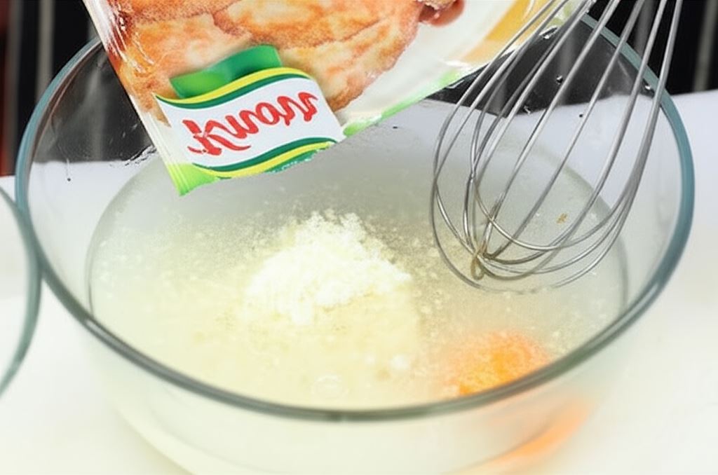 Wymieszaj Fix Knorr z wodą oraz jajkami, by uzyskać ciasto.