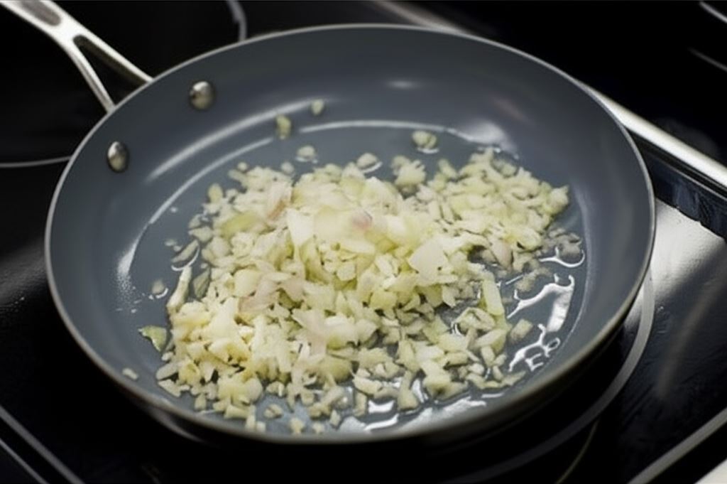 Czosnek i cebulę drobno pokrój i zrumień na oleju.