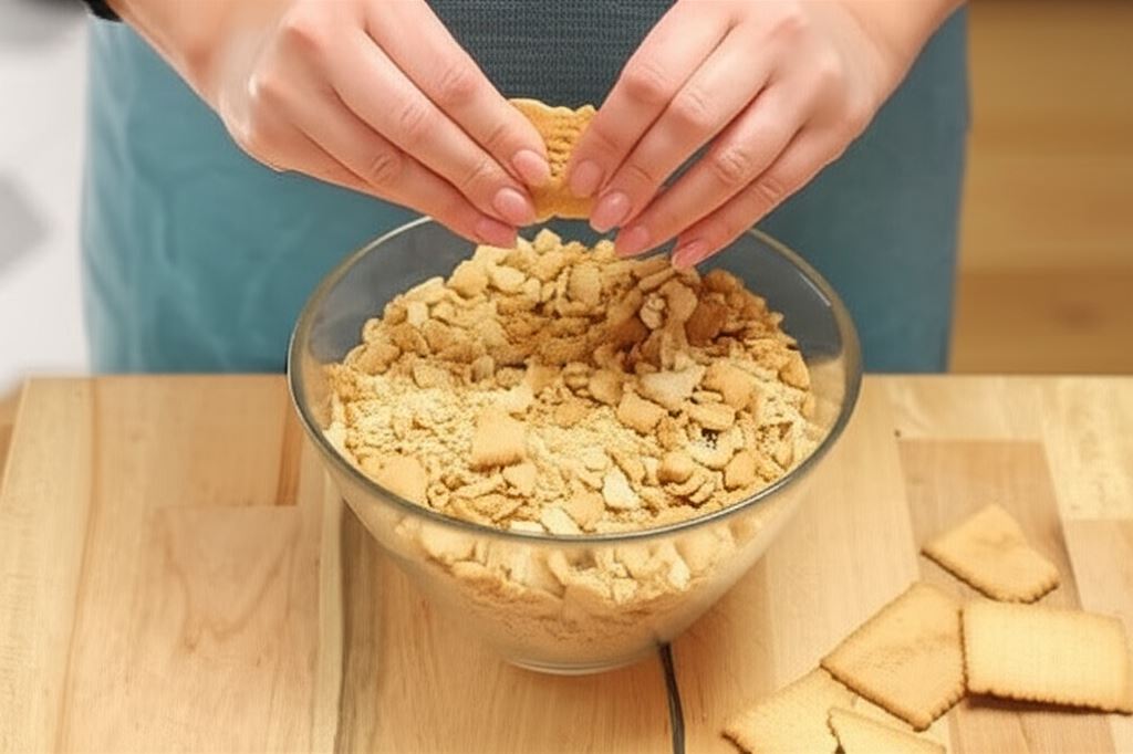 Herbatniki rozdrobnij dokładnie w misce.