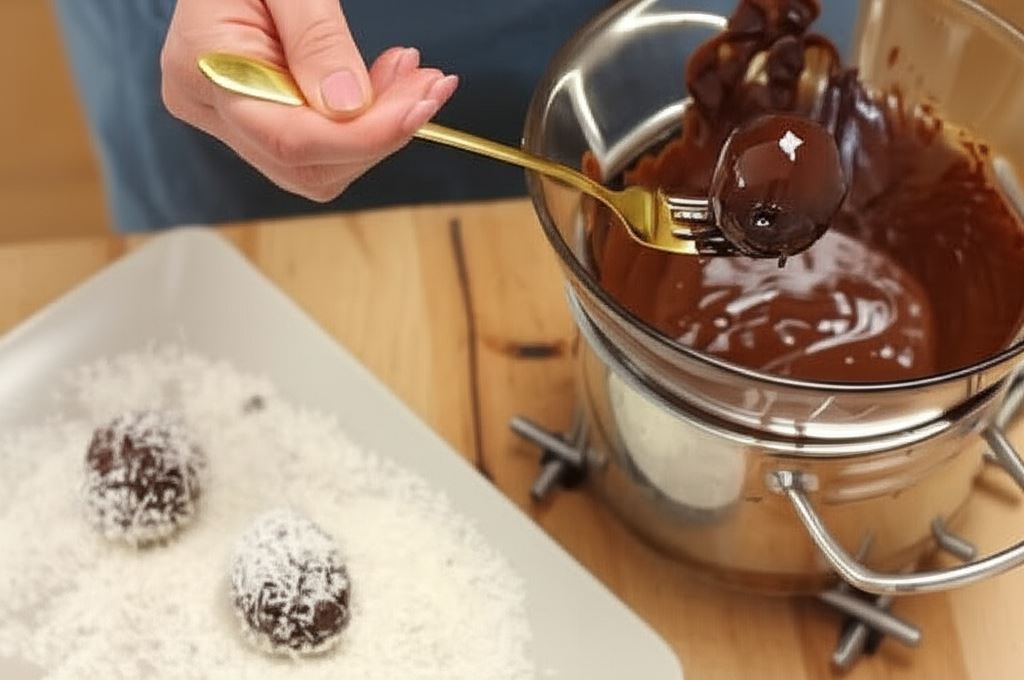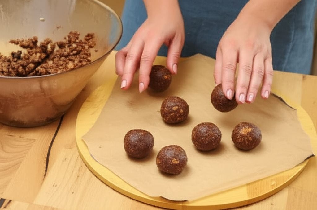 Uformuj kulki z przygotowanej masy i włóż do lodówki na 1 godzinę do schłodzenia.