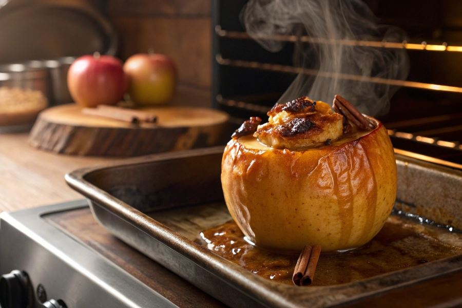 Do pieczenia używaj naczynia żaroodpornego z niskimi brzegami. Warto wyłożyć je papierem do pieczenia lub lekko natłuścić, aby zapobiec przywieraniu. Jeśli chcesz zachować więcej wilgoci w jabłkach, przykryj naczynie folią aluminiową na pierwsze 15 minut pieczenia, a następnie odkryj dla uzyskania apetycznej, złocistej skórki.