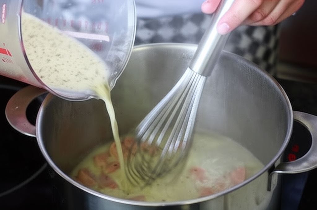 Wymieszaj Barszcz biały Knorr w 100 mililitrach chłodnej wody, wlej do wywaru i zagotuj przez chwilę.