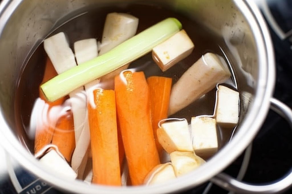 Umytą i obraną włoszczyznę zalej wodą.