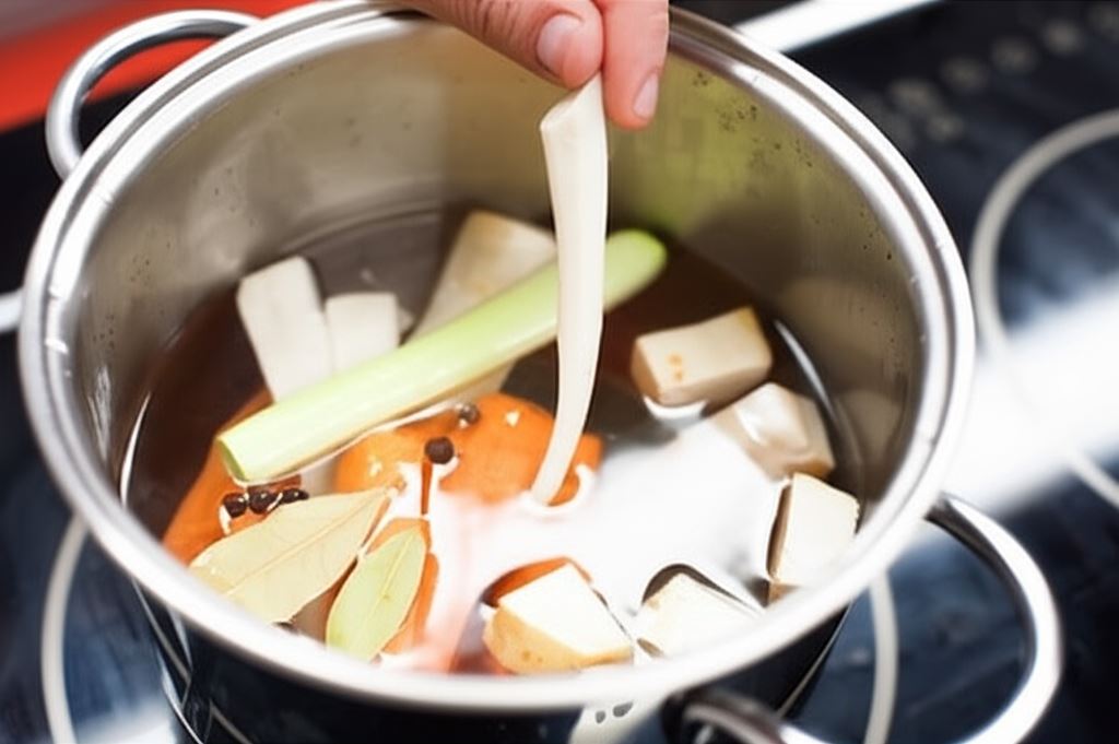 Wrzuć kawałek chrzanu, czosnek i przyprawy. Gotuj przez około 30 minut, następnie odcedź.
