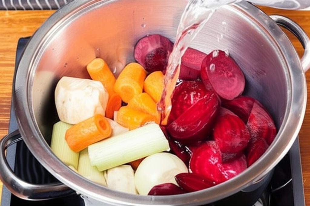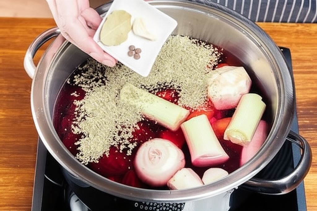 Gotuj barszcz przez około 1,5 godziny, po czym odcedź go do innego garnka.