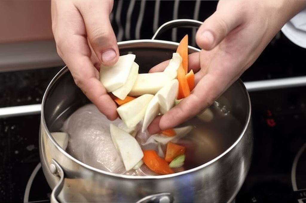 Przygotuj wywar na porcji rosołowej oraz warzywach. By zupa była bardziej sycąca, zetrzyj wcześniej włoszczyznę na tarce i lekko podsmaż ją w garnku na oleju.