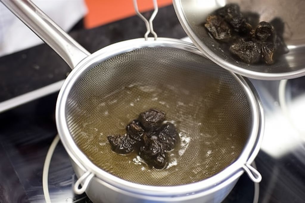 Potem przefiltruj wywar, wsyp łyżkę miodu i intensywnie go zagrzej.
