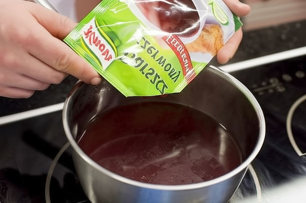 Wsyp Barszcz czerwony ekspresowy Knorr, przerywając równocześnie gotowanie.