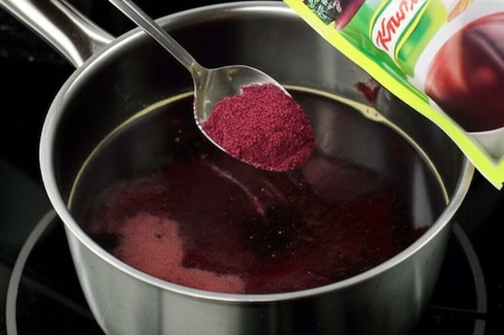 Wsyp Barszcz czerwony ekspresowy Knorr i wlej mleczko kokosowe. Przed serwowaniem możesz oprószyć zupę odrobiną wiórków kokosowych.