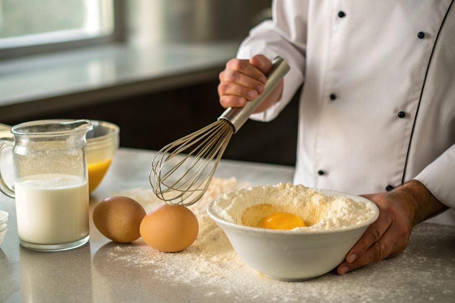Temperatura składników również ma znaczenie – jajka i mleko powinny być w temperaturze pokojowej, co zapobiega powstawaniu grudek i zapewnia jednolitą strukturę ciasta.
