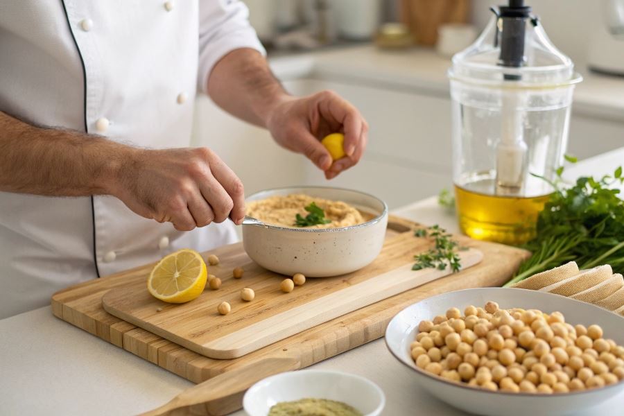 Proces przygotowania hummusu wymaga odpowiedniej kolejności dodawania składników: