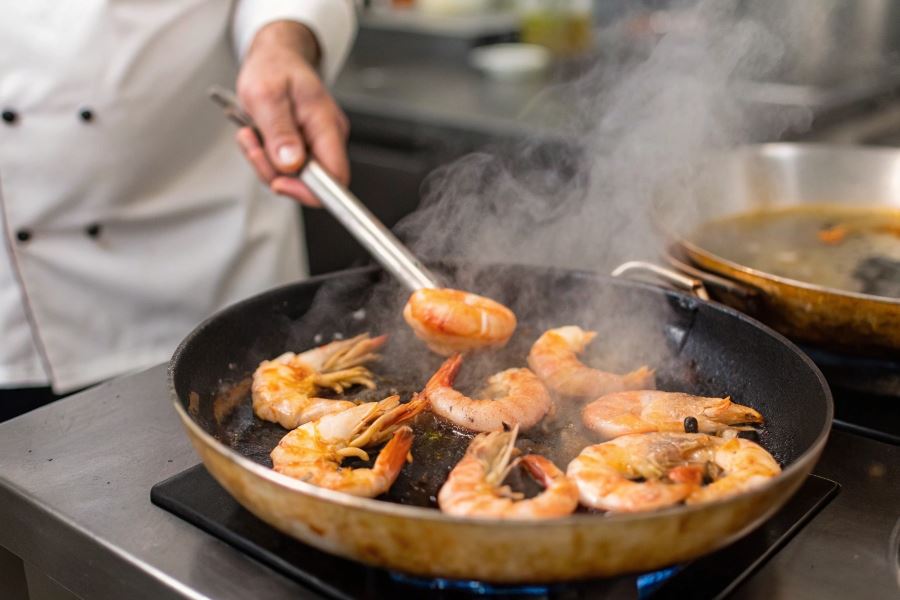 Kluczem do sukcesu jest obserwacja zmiany koloru – gdy krewetki z szarych stają się różowo-białe i zwijają się w kształt litery C, są idealne. Jeśli zwijają się w kształt litery O, oznacza to, że są już przesmażone.