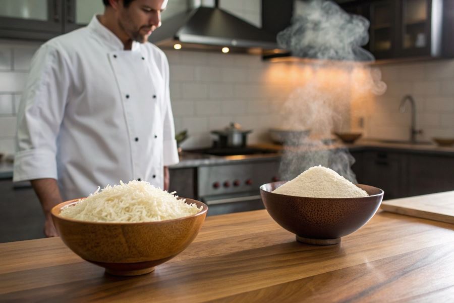 Kluczową zaletą ryżu jaśminowego jest jego wszechstronność – doskonale absorbuje smaki sosów i przypraw, co czyni go idealnym wyborem do dań o intensywnym charakterze. W przeciwieństwie do basmati, który zachowuje swoją strukturę i pozostaje sypki, jaśminowy tworzy bardziej zwartą konsystencję, idealną do potraw azjatyckich.
