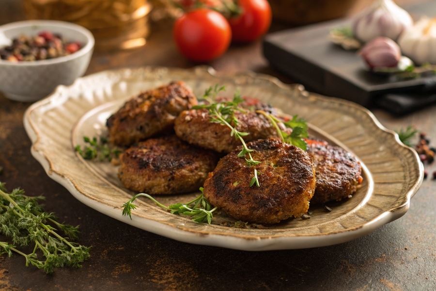 Aby uzyskać soczysty środek przy chrupiącej powierzchni, stosuj technikę odpoczynku – po zdjęciu z patelni pozwól kotletom „odpocząć” przez 3-5 minut na ciepłym talerzu pod luźną folią aluminiową. W tym czasie soki równomiernie się rozprowadzą, a mięso pozostanie soczyste.
