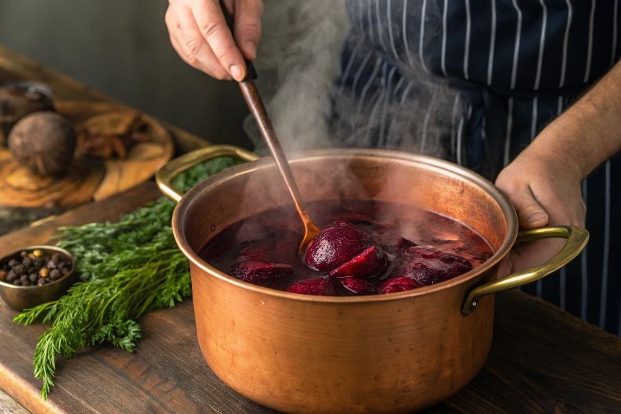 Sekret mistrzów kuchni: buraki duszone w całości zachowują więcej składników odżywczych i intensywniejszy smak niż te krojone.