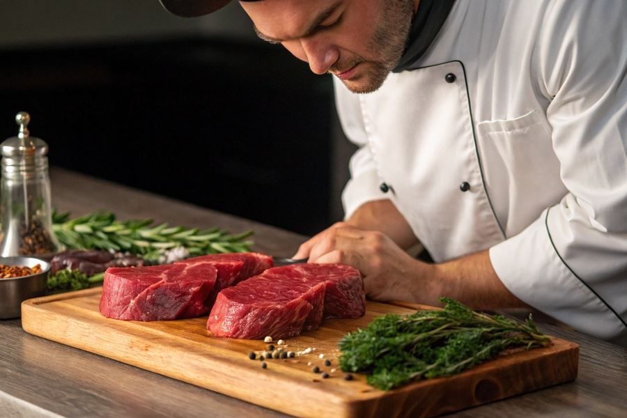 Proces dojrzewania wołowiny znacząco wpływa na jakość tatara. Mięso dojrzewające na sucho (dry aging) przez 21-28 dni rozwija głębszy, bardziej złożony profil smakowy. Podczas dojrzewania naturalne enzymy rozkładają włókna mięśniowe, co zwiększa kruchość i intensyfikuje smak. Wołowina dojrzewająca na mokro (wet aging) przez 14-21 dni w próżniowym opakowaniu również zyskuje na delikatności, zachowując jednocześnie soczystość.